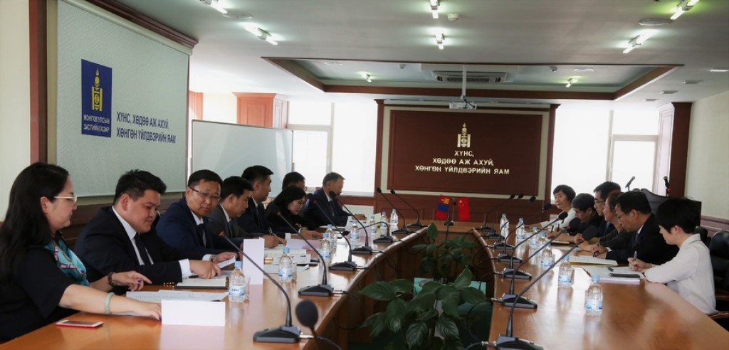 Deputy Minister of Food, Agriculture and Light Industry J.Saule received the representatives of the People’s Republic of China led by the Deputy Director of the State Market Regulatory Administration (SMRA) Qin Yizhi. At the beginning of the meeting, Deputy Minister thanked the Deputy Director of SMRA Qin Yizhi for his contribution to the development of bilateral relations and cooperation. She congratulated the SMRA on its establishment in April 2018 and introduced the current state of food and agriculture sector, SMEs and cooperatives, policies and measures being taken in the sectors. Deputy Director of SMRA Qin Yizhi is on his first visit through which, he seeks opportunities for expanding cooperation and exchanging opinions on authorization to food and meat products' export to China, standardization, metrology, accreditation, and certification. The parties will also approve an action plan to realize the memorandum of cooperation in the SME sector concluded this April. In this regard, Deputy Minister J.Saule made some cooperation proposals. She requested to support the export increase of organic agriculture products and lifting the temporary ban on account of Mongolia’s intention to export not only horse meat but also beef, mutton, and goat meat. Moreover, Deputy Minister requested to convey to the relevant authority the proposal to export wheat and rye flour to China and expressed her willingness to hold a working group meeting at Deputy Ministerial level with the Quality Supervision, Inspection, and Quarantine Department in nearest future. In addition, Mongolian representatives made their cooperation proposals in relevant fields. Deputy Director of SMRA Qin Yizhi stated that the proposals will be reviewed for inclusion in the action plan and respond in the nearest future, and the certain proposals will be conveyed to relevant authorities.