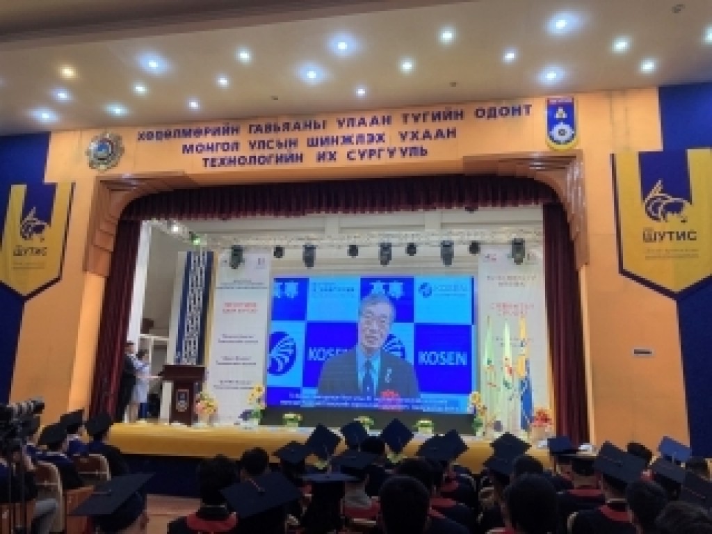 6月7日、小林弘之在モンゴル 日本国特命全権大使は、モンゴル科学技術大学において行われたモンゴル工業技術大学付属高専技術カレッジ、モンゴル国立科学技術大学付属高専技術カレッジ及び新モンゴル技術カレッジ3校合同の卒業式に出席した。卒業生111名は、5年間、日本式の高専教育システムの元で、高い水準の知識・技術を身につけてきた。卒業後は日本企業に就職する者も含めエンジニアとして経験を積み、有用な人材となることが期待されている。祝辞の中で、小林大使は、「モンゴルの自立的かつ持続的発展のためには、高専で学んだ若いエンジニアの力が必要不可欠です。皆さんが高専で学んだ、自由で創造的な発想を実用化する能力はきっとこれから社会で役に立っていくことでしょう。」と述べた。