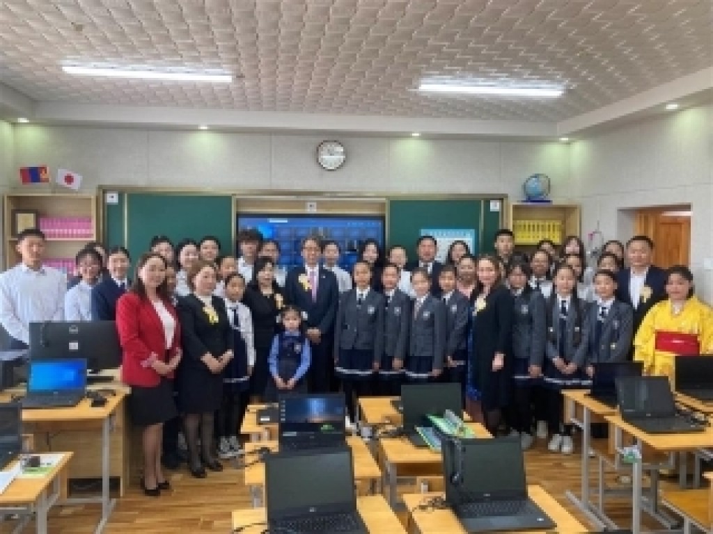 小林日本大使は「メルゲド実験学校日本語教室整備計画」供与式に出席