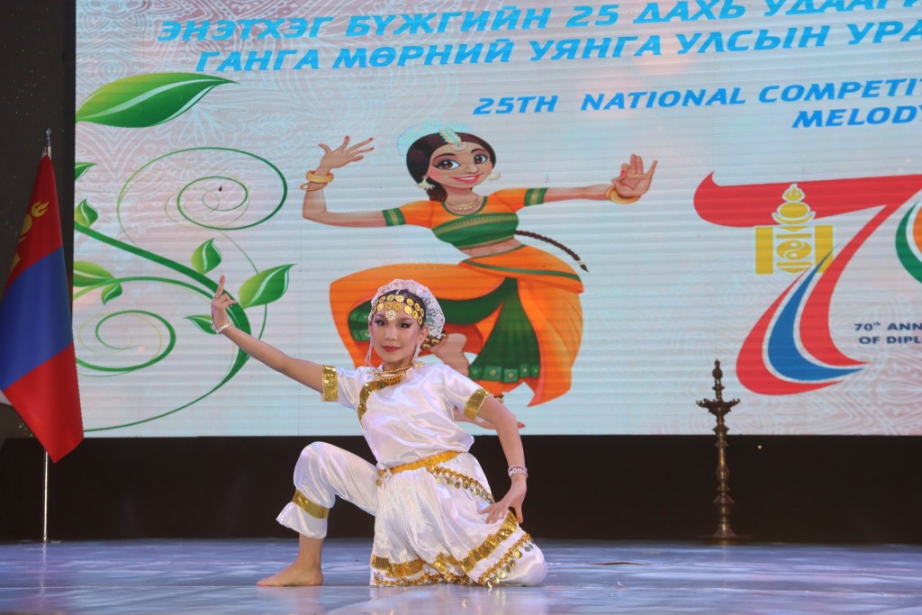 6日、インド共和国建国75周年およびモンゴルとインドの外交関係樹立70周年を記念して、「ガンジス川の旋律(2025」インド舞踊大会が開催された。