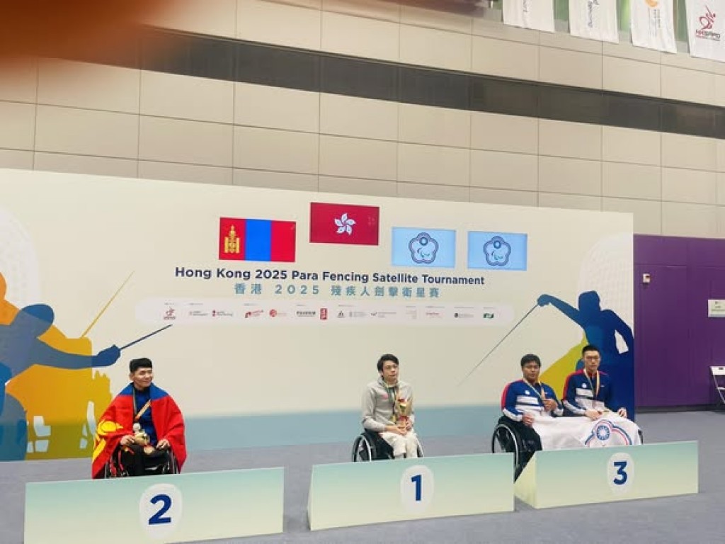 ダワースレン選手は、2025年車いすフェンシング・サテライト香港大会で銀メダルを獲得した。