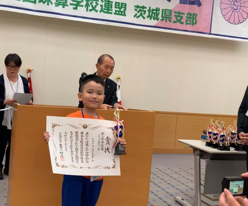 珠算競技大会でウイルストゥグルドゥル君が優勝した
