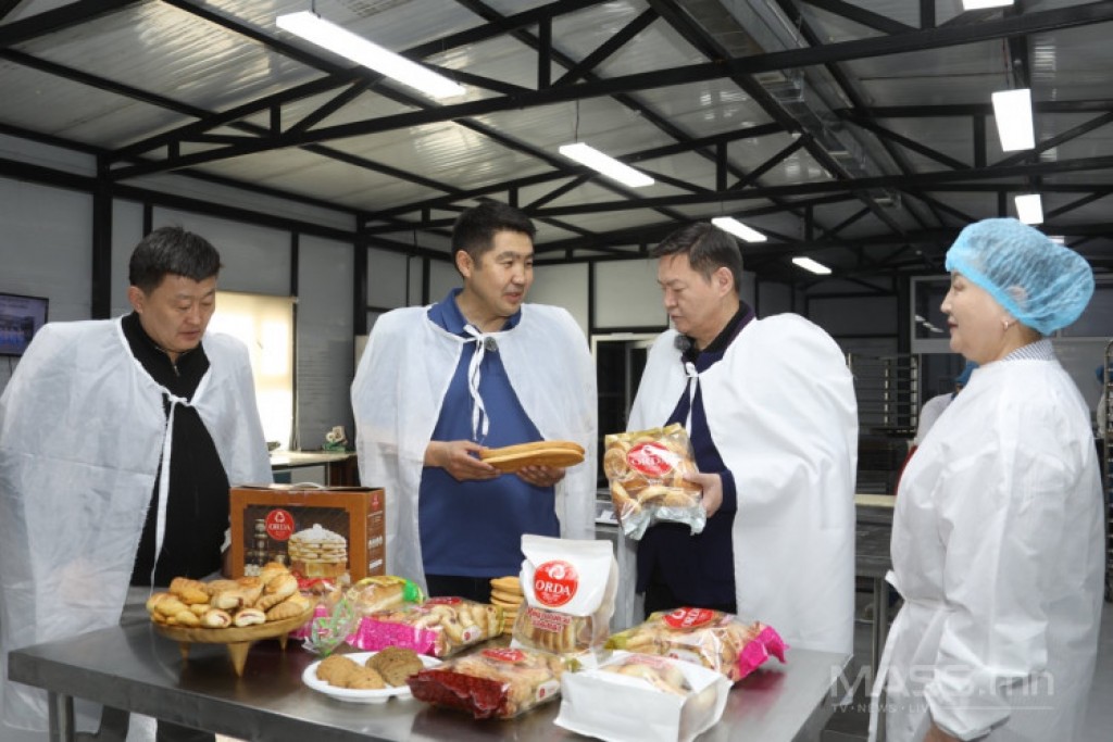 ダワーバヤル・大統領の産業・サービス政策顧問が、「食糧供給と安全保障」全国運動の一環として、ウブルハンガイ県アルバイヘール市でパンやペストリーを製造する「フンディン・ホフ・チョノ」社の「オルダ」食品工場を視察した。