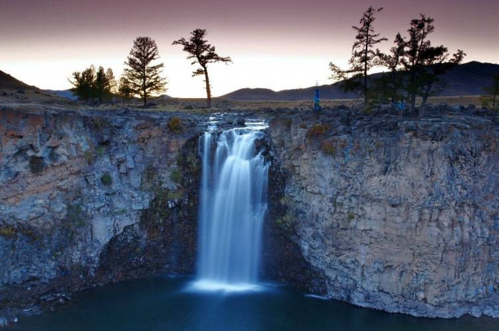 Самый знаменитый водопад Монголии. Расположен на правом притоке Орхона, речке Улаан гол. Местное население именует его — Улан Цутгалан (Ulaan Tsutgalan). Геологи предполагают, что в данной местности 20-30 тыс. лет назад произошло извержение вулкана и горячая лава покрыла долину реки Орхон более чем на 100 км. За тысячи лет река прорезала здесь глубокий каньон в вулканических базальтах и сейчас водопад находится в 100 м от реки Орхон. В результате землетрясения на пути реки образовался обрыв, и сейчас вода мощным потоком шириной 12 м падает с высоты 24 метра.