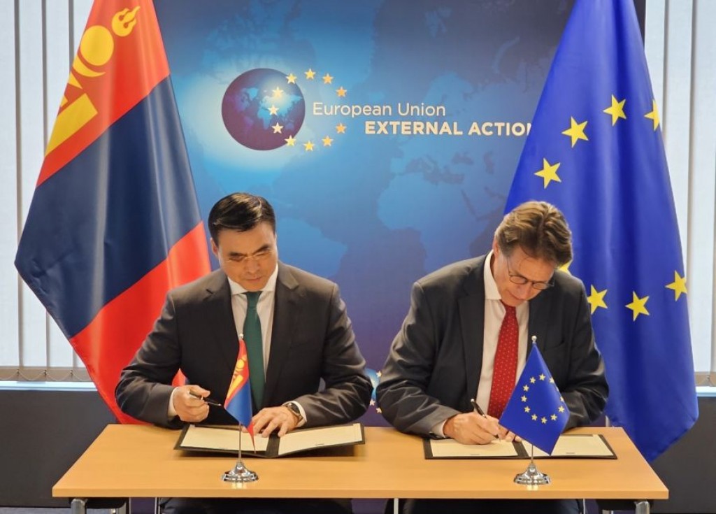 2023.07.31. В рамках 22-го заседания Совместного комитета Монголия-Европейский Союз вице-премьер Монголии С.Амарсайхан и директор Департамента по Азиатско-Тихоокеанскому региону Европейской службы внешних связей (ЕСВС) Гуннар Виганд подписали соглашение о создании рабочей группы по развитию сотрудничества. Рабочая группа по развитию сотрудничества между Монголией и ЕС будет являться важным механизмом для обмена мнениями по эффективной реализации проектов, осуществляемых в рамках Многолетней ориентированной программы Европейского Союза. Европейский союз финансирует и реализует 33 проекта по приоритетным направлениям зеленого, устойчивого экономического развития и демократии в Монголии.