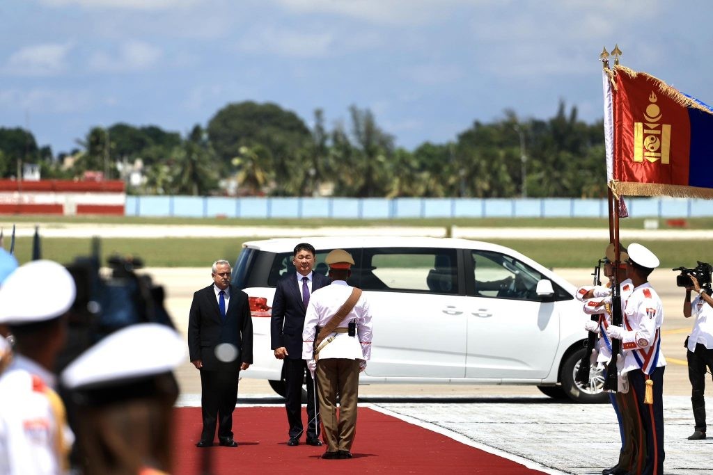 В международном аэропорту имени Хосе Марти в Гаване, где в честь прибытия Президента Монголии был выстроен почетный караул, главу государства встречали официальные лица во главе с министром промышленности Республики Куба Элоем Альваресом Мартинесом, а также посол Монголии С.Золжаргал и дипломатический персонал монгольского посольства.