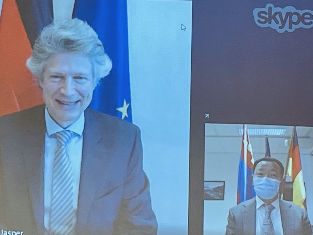 蒙古外交部国务秘书安赫巴亚尔同德国外交部亚太司副司长亚斯佩尔•维克举行视频会谈