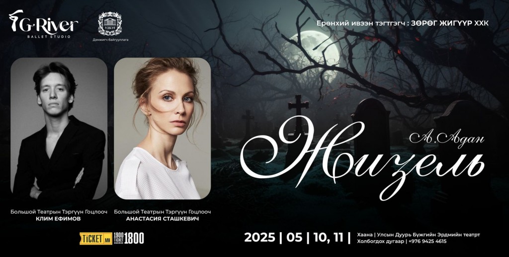 这部著名的《吉赛尔》将于5月10日和11日在蒙古国国家歌舞剧院的舞台上演出。