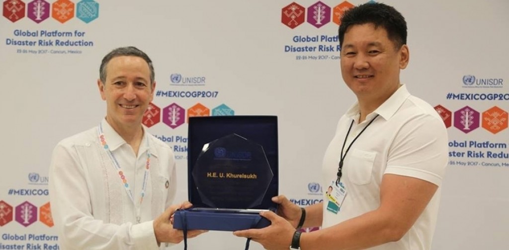 The Deputy Prime Minister of Mongolia, H.E. U. Khurelsukh was recognized as an Asian Champion for Disaster Risk Reduction at the Global Platform in Mexico.