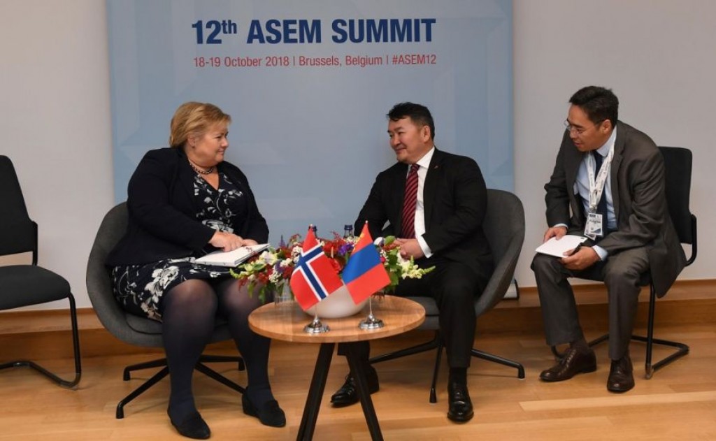 On the sidelines of the 12th Asia-Europe Meeting (ASEM) summit, President of Mongolia Khaltmaagiin Battulga met Prime Minister of the Kingdom of Norway Erna So...