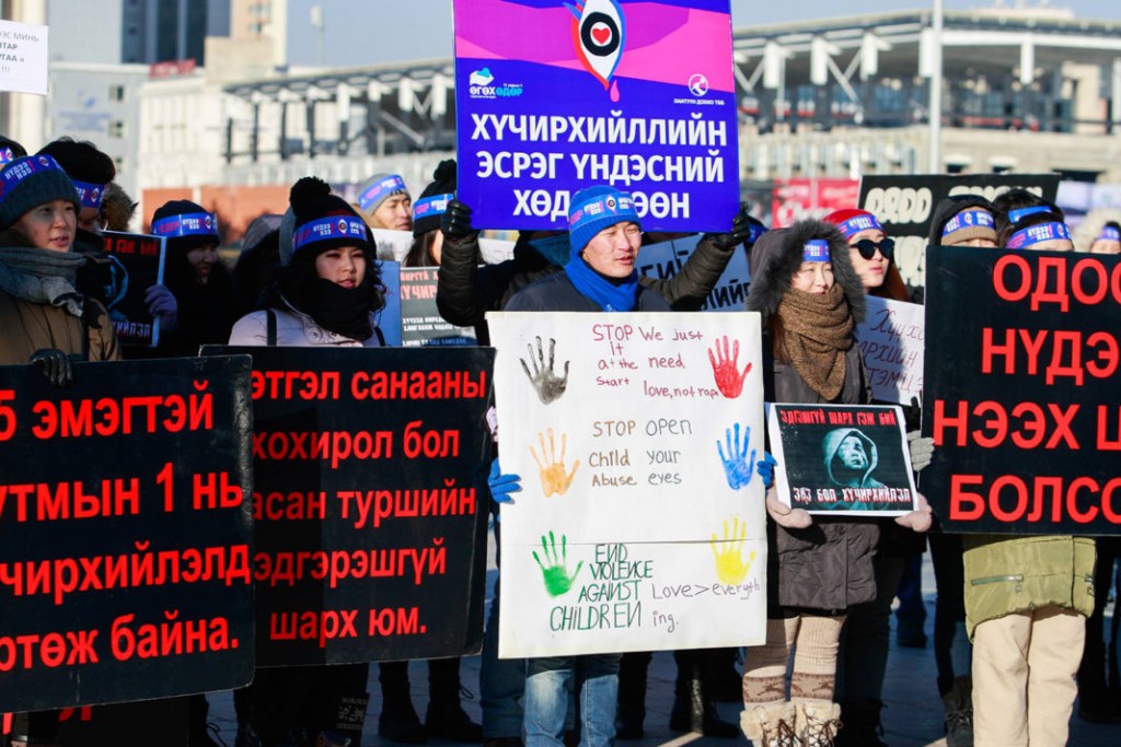 As a part of the “Open Your Eyes” national movement, a demonstration organized by Ugukh Udur Movement and Lantuun Dokhio NGOs held at Sukhbaatar Square to bring attention to the issue of violence against women and girls. Participants of the movement demanded decision-makers to carry out a better and wider intervention for fighting against sexual violence and to provide better protection and security for the victims in order to eliminate the issue. 298 children were sexually assaulted between 2015 and 2016, according to a report by the General Prosecutor’s Office. As stressed by the national movement initiators, these are only documented cases and it’s impossible to imagine how many more have been abused and not reported. Reportedly, 48 percent of these children were assaulted by their family member or relative. Experts explained that interfamilial sexual abuse can cause a more painful and traumatic experience to a child than a person sexually abused by a stranger and those victims need treatment for a long time, if not, for the rest of their lives. “We’ve been addressing sexual violence for many years. We need a different strategy for combatting this issue. Each and every person needs to fight against violence. Violence against girls has reached a disastrous level and become a threat to the national security.” said Ch.Ganjavkhlan, director of Lantuun Dokhio.