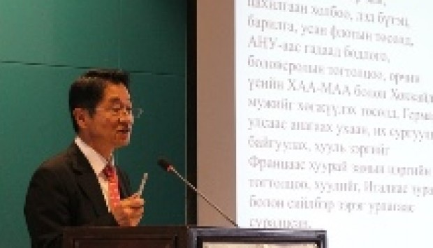 15日、清水武則日本大使は「NOUS Mongolia」NGO団体の主催による「6:45」という市民向けのセミナーで講演をした。会場を訪れた約50人の大学生、社会人を前に「日本の発展の秘密~人材育成か政策か」というテーマで講義を行った。清水武則大使は江戸時代から明治時代までおよび戦後の復興まで続く日本の歴史について紹介し、日本の発展の背景には人材開発を国家の発展の基礎とする考えがあったと解説した。講義後の質疑応答では、日本が数々の不景気を乗り越えた要因、日本の発展の経験からモンゴル国民に与えるアドバイスなどについて聞かれ、活発な議論が行われた。