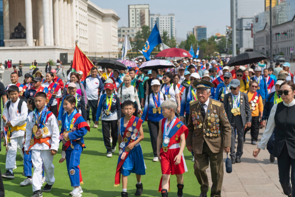 モンゴル代表チームの選手らは、大陸、世界、国際大会で獲得した金メダル19個、銀メダル29個、銅メダル42個という輝かしい成果を携えて「選手の日」に臨んだ。