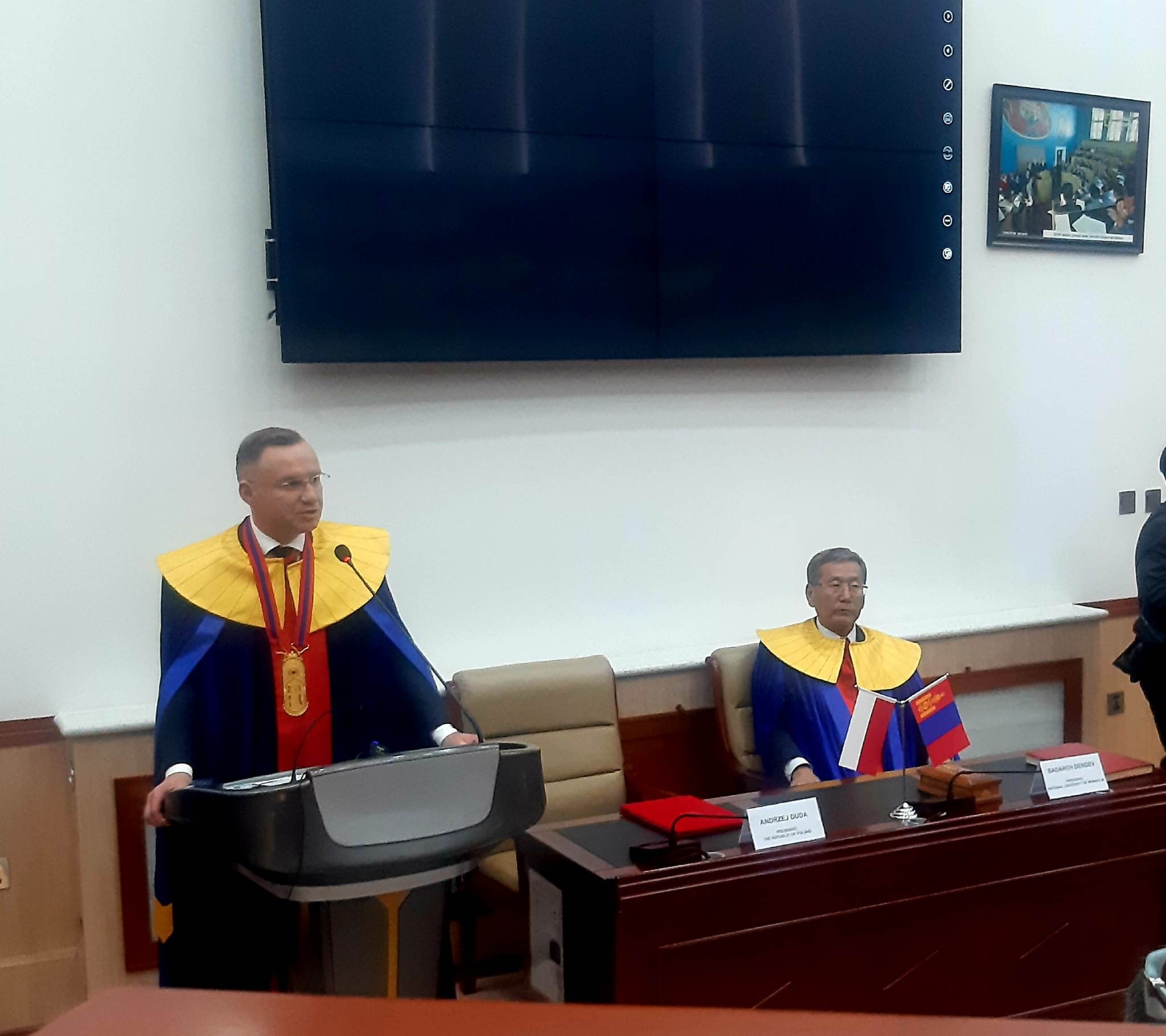 БНПУ-ын Ерөнхийлөгч Анджей Дуда Монгол Улсын Их Сургуулиар зочилсон юм. Энэ үеэр БНПУ-ын Ерөнхийлөгч Анджей Дудад Монгол Улсын их сургууль “Хүндэт доктор” цол олголоо.