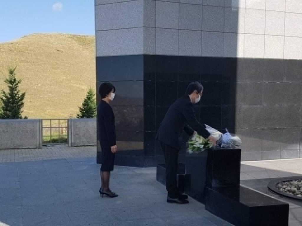 小林日本大使夫妻は日本人抑留中死亡者慰霊碑を訪問した