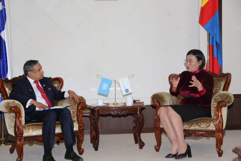 アマルザヤ労働・社会保障大臣は国連のモンゴル常駐代表と会談をした