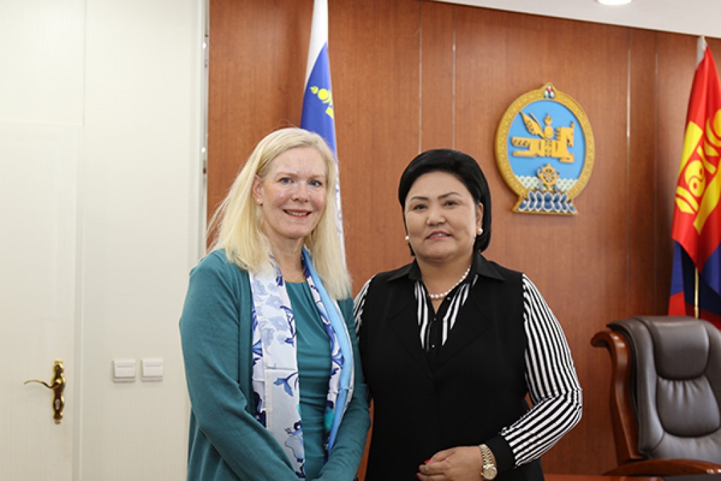 オユンホロル自然環境・観光大臣はスウェーデン王国の大使アンナ・リンドステッド氏と会談をした