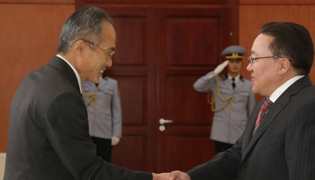 エンフボルド議長は訪問の一環として大島理森衆議院議長と伊達忠一参議院議長と会談をした...
