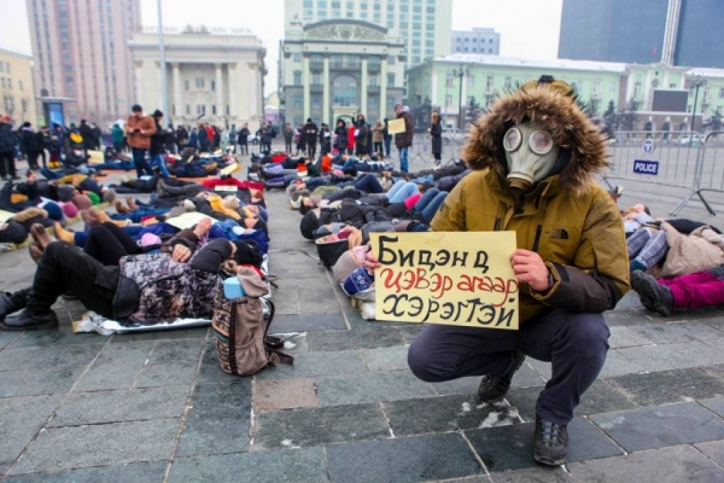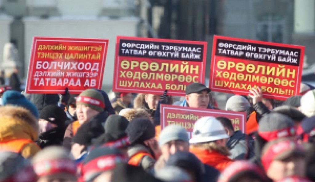 モンゴル労働組合の加盟機関、支援者によるデモが開催された