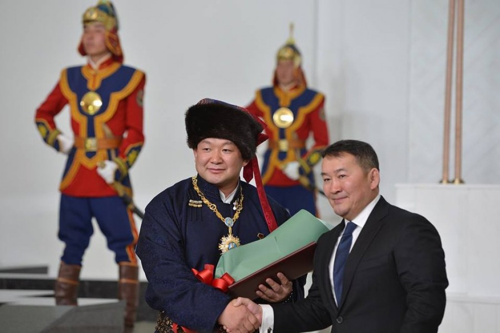 柔道選手トゥブシンバヤル氏が「チンギスハーン」勲章が授与された
