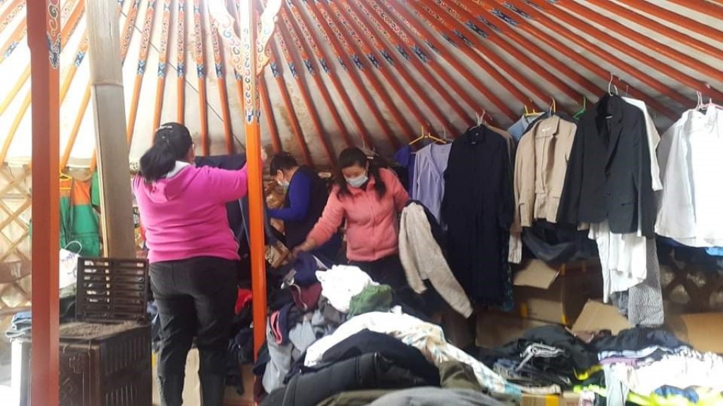 ゲル地区の住民にJICAの元ボランティアから衣類等寄付