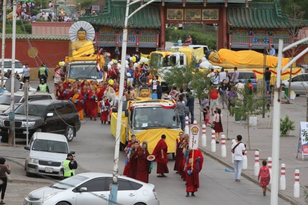 9日は旧暦の夏の始めの月の15日の満月の日に釈迦のドゥイチン・ウドゥルであった。ドイチン・ウドゥルとは釈迦が誕生した日、35歳で悟りを得た日、81歳で入滅した日が重なった日を言う。この日は仏教を信仰する国では盛大に祝われており、モンゴルでも毎年、善事をする日として様々な行事が開催されている。この日は互いに優しい言葉をかけ、嘘や悪口を言わない、盗みをしない、できれば肉料理を食べないなどと悪事をしないように心かける。この日の善事も悪事も何倍も増加すると信じられている。ガンダン寺院、市役所、NGO団体の共催により、僧侶たちとツァム踊りのお面を被った踊り手たちがガンダン寺院から中央広場までパレードをした。僧侶たちがスフバータル広場でお経を唱え、信者たちが瞑想をした。さらに、釈迦と仏教をテーマに講演が行われ、長唄や馬頭琴の演奏、ジョノン・グループのコンサートが披露された。