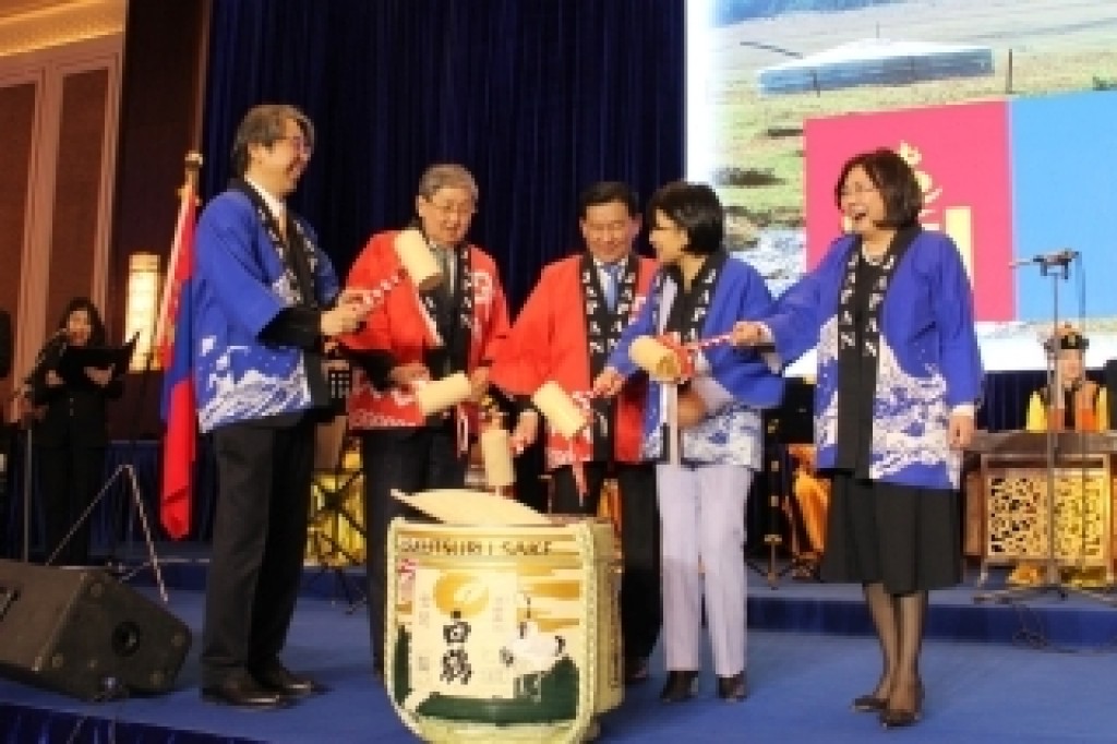 在モンゴル日本国大使館は、10日、ウランバートルシャングリラホテルのボールルームにおいて、フレルバータル副首相兼経済開発大臣を始めとする多数のモンゴル側要人等の出席を得て、天皇陛下誕生日祝賀レセプションを開催した。馬頭琴交響楽団による両国国歌演奏の後、小林弘之大使が挨拶を行い、天皇陛下が63歳の御誕生日を迎えられたことをお祝いするとともに、昨年の日本モンゴル外交関係樹立50周年を記念してモンゴルで100以上の記念事業が成功裡に実施されたことに対して関係者への謝意を述べたほか、2021年7月からこれまでに天皇陛下がフレルスフ大統領、ザンダンシャタル国家大会議議長及びオユン・エルデネ首相と懇談されたことは、緊密な両国関係を象徴するものであり、今後の更なる両国関係発展に寄与すると確信している等、述べた。その後、フレルバータル副首相兼経済開発大臣による挨拶に続いて鏡開きが行われ、ダワースレン・モンゴル日本議員連盟会長が乾杯の辞を述べた。会場では、モンゴルと交流のある宮崎県都城市から宮崎牛が、また、2022年8月にスフバートル広場で「白い道踊りフェスティバル」を開催された河内志郎在徳島モンゴル国名誉領事一行から日本のうどんが提供され、出席者から好評を得た。さらに会場入り口では、当館、JICAモンゴル事務所、帰国留学生組織JUGAMO会がそれぞれの活動を説明するとともに、世界銀行モンゴル事務所、アジア開発銀行モンゴル事務所、ユニセフモンゴル事務所が、日本と協力してモンゴルで行っている事業を紹介した。今回のレセプションは、トランスウエスト社、トヨタセールスモンゴリア社、モビコム社、ババリアモータース社から協賛や会場内展示の協力を得て、日本とモンゴルのビジネス交流の一端について紹介する機会ともなった。