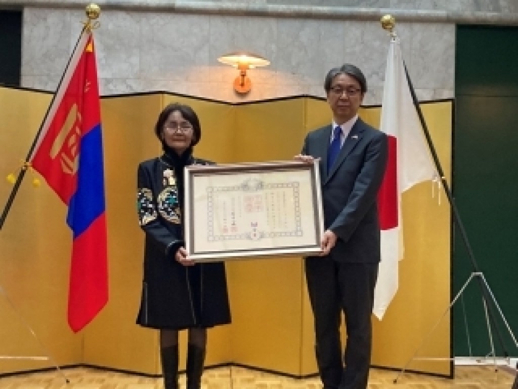 日本語教師プレブスレンさんが日本国勲章を受章した。3月27日、在モンゴル 日本国大使公邸において、プレブスレンさんに日本国勲章・旭日小綬章受章の伝達式が行われた。プレブスレンさんは元エルデミーン大学学術研究担当副学長兼教授、元人文大学大学院長兼教授でもある。モンゴルにおける日本・モンゴル間の学術交流及び相互理解の促進に寄与されたということでの授与である。小林弘之 在モンゴル 日本国特命全権大使は、プレブスレン氏に対する叙勲理由の概要につき、同氏がこれまで長年にわたり、人文大学、エルデミーン大学及びモンゴル民族大学において日本語教員として多くの教え子を育てるかたわら、多くの論文執筆や研究発表を行ったほか、モンゴル日本語教師会副会長、モンゴル日本青年交流支援センター理事長としてモンゴルにおける日本語教育の発展に貢献されたこと等を紹介した。小林大使は、日本モンゴル外交関係樹立50周年であると同時に青少年交流推進年である2022年に、これまで日本語教育を通じた青少年の相互理解と交流に貢献されてきたプレブスレン氏の受章が決まったことの意義を強調し、プレブスレン氏に対して勲記と勲章を授与した。