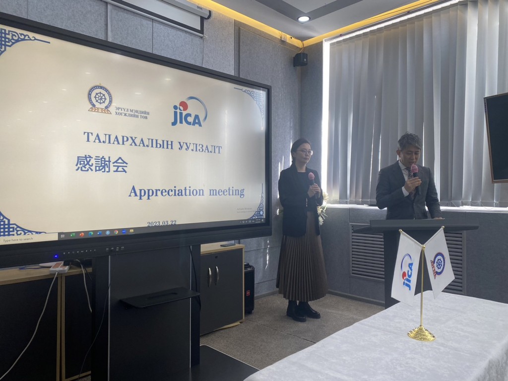 JICAと保健開発センターは2015年から「一次及び二次レベル医療施設従事者のための卒後研修強化プロジェクト」、「医師及び看護師の卒後研修強化プロジェクト」を実施している。3月22日にこれまでの長い協力に関連した感謝の日を開いた。「感謝の日」イベントではJICA事務所、「医師及び看護師の卒後研修強化プロジェクト」に今後も豊かに活動が広がっていくことを祈念した大麦のモチーフのトロフィーが贈呈された。モンゴルの保健分野の核となる人材育成を通じ、モンゴルの医療サービスの質の向上に寄与するべくJICAは今後も保健開発センターと協力していくとのこと。