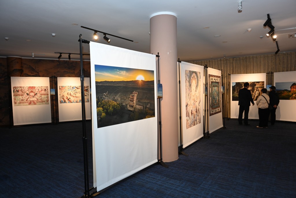 中国観光省、在モンゴル中国大使館、チンギス・ハーン博物館、モンゴル中国文化交流センター、在ウラーンバートル中国文化センター、敦煌学研究所が共催した展覧会は、6部から構成されている。同展覧会で、18点の高精細デジタル・プリントの壁画が展示された。これらの作品は、建物、彫刻、空、舞踊、音楽などをテーマにしており、敦煌芸術の意味の深さと独特な美しさを表現している。