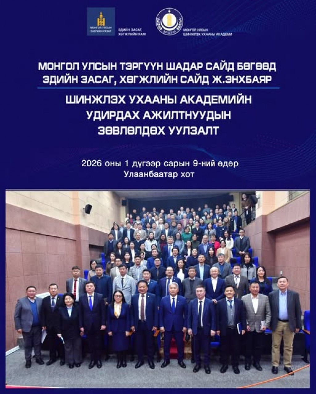 エンフバヤル大臣はモンゴルの科学分野に対する予算は1564億トゥグルグに達していることを強調した一方で、研究費の割合は依然として不十分であることを指摘した。過去10年間、科学分野への資金配分は国内総生産の約0.1%にとどまっており、今後はこの比率を段階的に引き上げることを目標に取り組んでいると述べた。また、内閣の新たな組織体制の下で、科学・技術政策が経済開発省の所管となったことにより、開発政策や計画を科学的根拠に基づいて策定し、研究成果を経済活動へと結び付けるための法的および政策的環境が整備されたことを強調した。これにより、同分野のインフラ刷新や、研究所・実験室、設備の国際基準への適合を図る取り組みが段階的に進められていることも言及した。