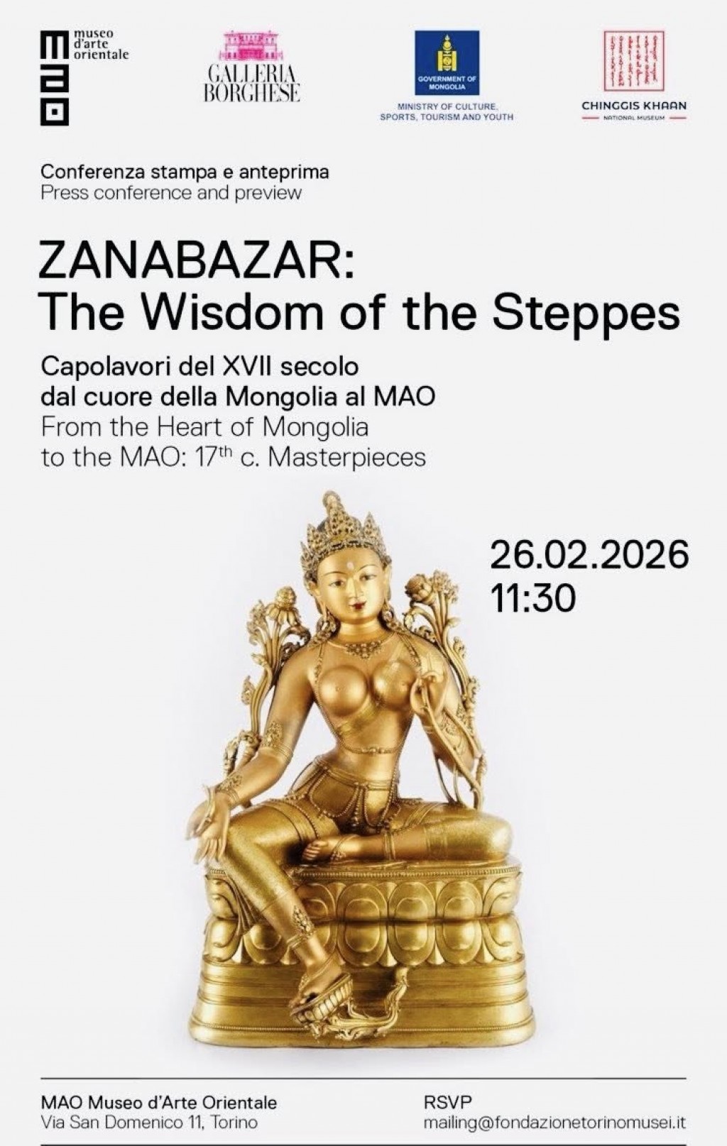 トリノ市で「ザナバザル:草原のまなざし」展覧会が開かれた。