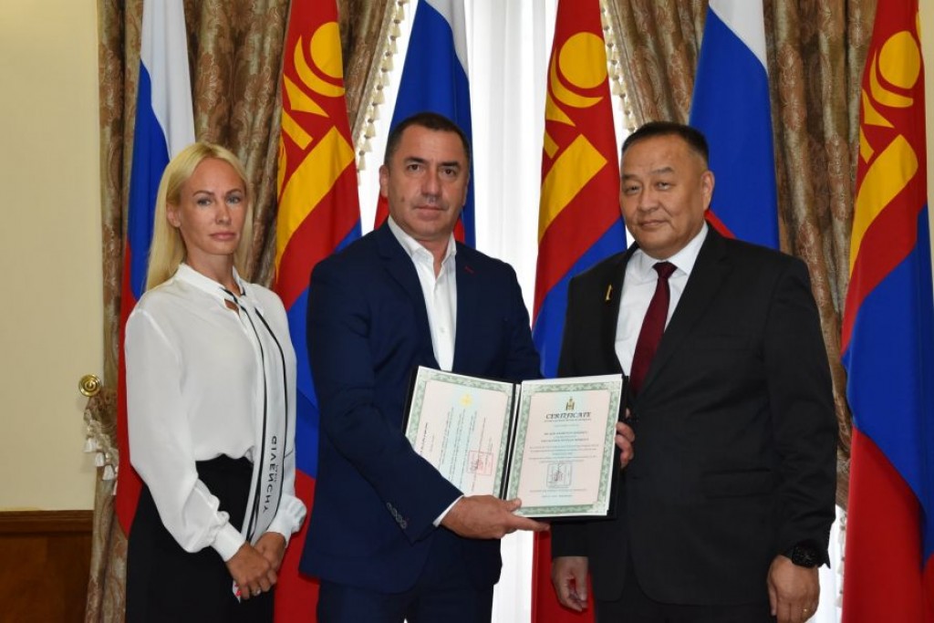 Монгол Улсаас ОХУ-д суугаа Онц бөгөөд Бүрэн эрхт Элчин сайд Д.Даваа ОХУ-ын Сочи хотын Хурлын гишүүн Игорь Амаревич Селезнёвт Монгол Улсын Соёлын элчийн гэрчилг...
