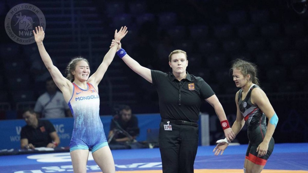 Эмэгтэйчүүдийн 59 кг-ын жинд Т.Алтжин хүрэл медалийн төлөөх барилдаанд Дэлхийн бөхийн нэгдсэн холбооны нэр дээр барилдсан ОХУ-ын бөх Анастасия Сиделниковаг 6:...