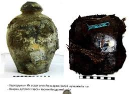 Хоёр орны эрдэмтдийн судалгаа малтлага хийж байх явцад сүмийн дөрвөн булан мөн зүүн баруун шатны дороос тус бүр вааран савтай зүйл олдсон нь Их хаадын аравнайлсан есөн эрдэнийн бэлгэдэл бүхий шүншиг байлаа.