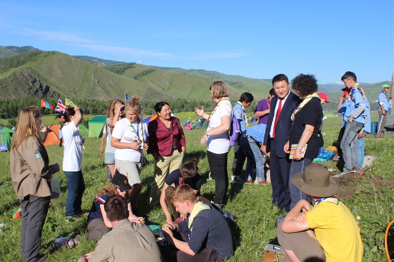 Г. Ариунчулуун: Энэ арга хэмжээг зохион байгуулахын тулд бид хүүхдүүдийг арав арваар нь салаа болгосон. Нэг дэд зусланд дөрвөн хотхон, дөрвөн хотхон нь дотроо дөрвөн бүлэг, дөрвөн бүлэг нь дотроо дөрвөн салаатай гэх мэт 40, 160 гэсэн зохион байгуулалттай байгаа. Тэгэхээр нэг хотхонд ойролцоогоор 1200 гаруй хүүхэд байгаа юм. “Нийгмийн хөгжлийн хотхон” буюу иргэнийхээ хувьд мэдэж байх ёстой нийгмийн мэдлэг, мэдээллийг өгч байгаа хотхон ажиллаж байна. Мөн “Шинжлэх ухаан, танин мэдэхүйн цогцолбор” буюу хүүхдүүдэд шинэ мэдлэг олгох цогцолбор байна. Түүнчлэн Скаут цогцолбор байна. Бид энэ цогцолборыг “Браунси арал” гэж нэрлэсэн байгаа. Энд хүүхдүүдэд шинэ дадал чадвар олгох зорилгоор байгуулсан. Дөрөв дэх нь “Адал явдалт цогцолбор” гэж байгаа. Энэ нь өөрийгөө сорьж үзэх, өөрийнхөө хүч чадлыг сорих, тодорхой хэмжээний саад бэрхшээлийг багаараа даван туулж, даалгавар биелүүлэх ийм сонирхолтой цогцолбор байгаа юм. Түүнээс гадна гадаадын скаут хүүхдүүддээ зориулаад “Нүүдэлчин цогцолбор” буюу монголын нүүдлийн соёлыг дэлхий даяр танилцуулах ийм цогцолборыг ажиллуулж байна. Энд монгол гэр барих, морь, тэмээ унах гэх мэт монголын соёл, ёс заншлыг мэдэх боломжтой. Мөн орой бүр хүүхдэд зориулсан соёл амралтын арга хэмжээнүүд явагдаж байгаа. Ер нь энэ бол хүүхдийн хөгжлийн талбар, хүүхэд өөрийгөө нээх, өөрөө өөрийгөө амьдралд сургах, хамт олонтойгоо цуг хөгжих, үйл ажиллагааныхаа явцад суралцах энэ бүх нөхцөл бололцоог олгосон ийм арга хэмжээ юм. Энд ээж ааваасаа салж үзээгүй хүүхдүүд ч бий, анх удаа майханд амьдарч үзэж байгаа хүүхдүүд ч байна. Тэдгээр хүүхдүүдэд бүгдэд нь сорилт ирж байгаа. Түүнийг даван туулах, хамт олонтойгоо эв нэгдэлтэй байх, хамтран шийдвэр гаргаж, түүнийгээ гүйцэтгэх, хамт олныхоо дунд ямарваа нэг үүрэг хариуцлага хүлээж, хүлээсэн үүргээ биелүүлэхийн төлөө хичээж, зүтгэх гэх мэт дадал чадварыг олгож байна. Скаутын хөтөлбөрийг амьдралд бэлтгэх албан бус хөтөлбөр гэж үздэг. Бид энэхүү арга хэмжээг олон улсын стандартын дагуу олон улсын хүүхдийн “Найрамдал” төв дээр 7 хоногийн туршид зохион байгуулж байгаа юм.