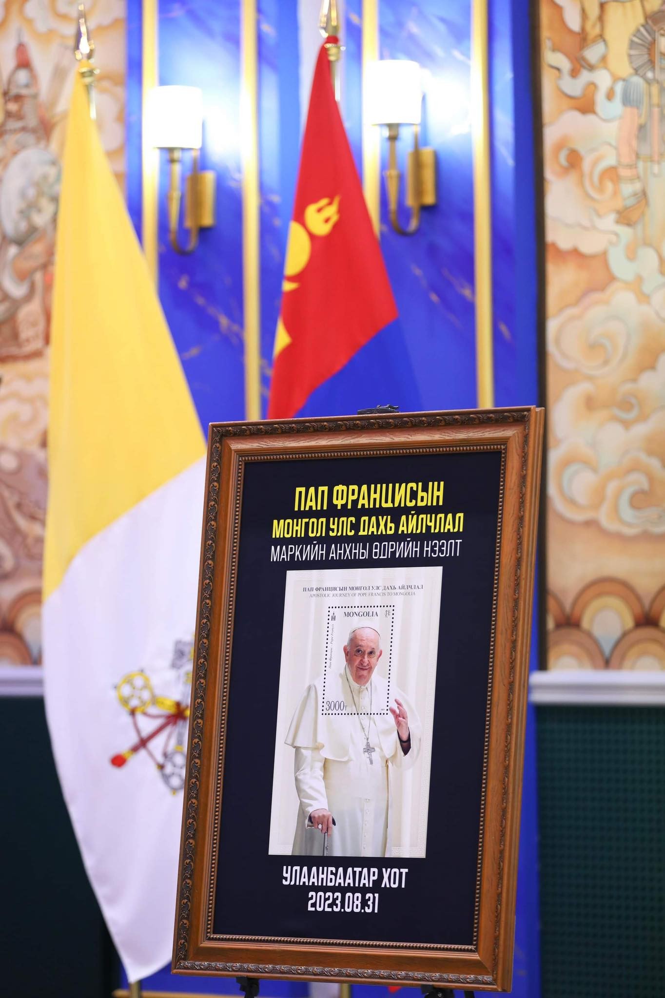 Айлчлалтай холбогдуулан “Пап Францисын Монгол Улс дахь айлчлал” сэдэвт шуудангийн маркийг худалдаанд гаргалаа. Шуудангийн маркийг нээх ёслолын үеэр Монгол Улсын Ерөнхийлөгчийн Тамгын газрын дарга Я.Содбаатар хэлсэн үгэндээ, Монгол Улс, Гэгээн Ширээт Улсын харилцаа, хамтын ажиллагаа соёл, боловсрол, эрүүл мэндийн салбарт өргөжин хөгжиж байгааг тэмдэглэсэн бол Кардинал Луис Антонио Тагле “Шуудангийн маркийн нээлтийн ёслолд оролцож байгаадаа баяртай байна. Энэ нь хоёр улсын ард түмэн, хүн хоорондын харилцааг идэвхжүүлэхэд чухал ач холбогдолтой үйл явдал” гэлээ. “Пап Францисын Монгол Улс дахь айлчлал” сэдэвт маркийг 22,500 ширхэг хэвлэжээ.