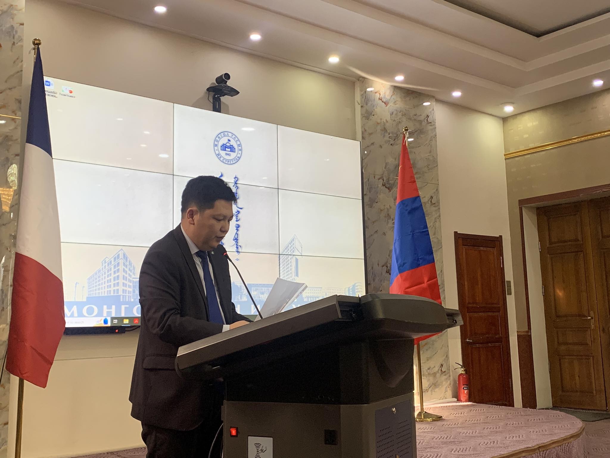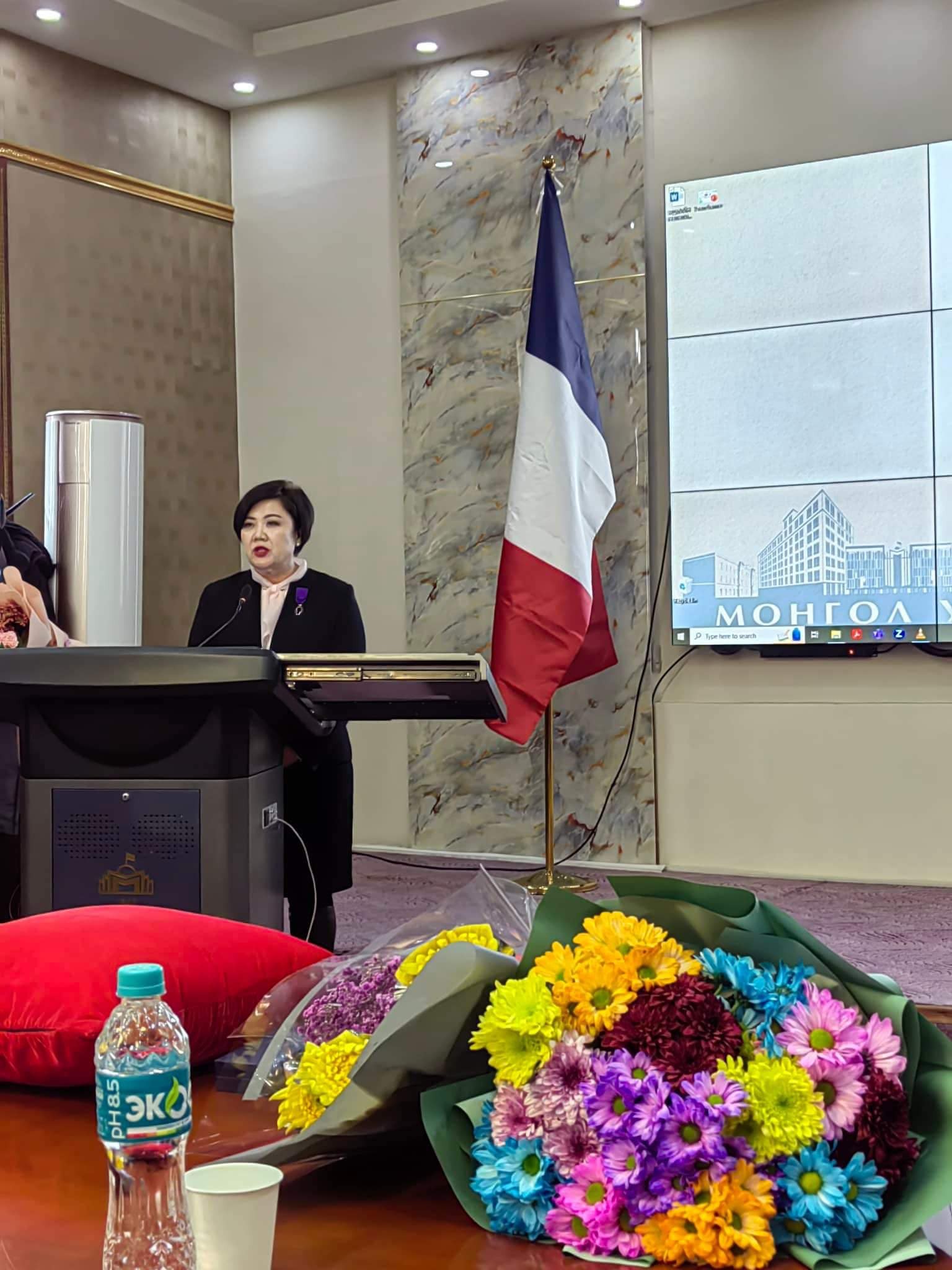 Монгол Улсад франц хэлний мэргэжилтэн бэлтгэж эхэлсний 60 жилийн ойг тохиолдуулан Монгол Улсад франц хэлийг заах, түгээн дэлгэрүүлэхэд хувь нэмрээ оруулж байгаа МУИС-ийн 3 багшийг БНФУ-ын нэр хүнд бүхий одонгоор шагнасныг БНФУ-аас Монгол Улсад суугаа Онц бөгөөд Бүрэн эрхт Элчин сайд Себистиан Сүрүн гардуулан өгсөн юм. Шагнал гардуулах ёслолын үеэр бид Элчин сайд Себистиан Сүрүнтэй хэдэн хором хөөрөлдлөө.