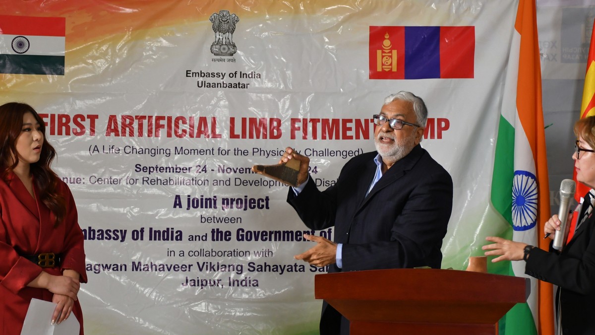 Элчин сайд Атул Малхари Готсурве: Бүгд Найрамдах Энэтхэг Улсын Засгийн газрын буцалтгүй тусламжийн хүрээнд “Жайпур фут” төслөөс хөгжлийн бэрхшээлтэй 650 хүнд хиймэл хөл үнэ төлбөргүй хийж өгч байна. Ингэснээр зөвхөн 650 хүнийн бие махбодь төдийгүй тэдний гэр бүлд сэтгэл зүйн хувь нэмэр оруулж байгаа хэрэг юм. Манай ерөнхий сайд Нарендра Моди “Нэг дэлхий, нэг гэр бүл, нэг ирээдүй” гэсэн алсын харааг зорилт болгон хэрэгжүүлж байна. Энэ зорилтын хүрээнд бид бүгд нэг гэр бүл учраас бие биедээ халуун сэтгэлээр туслах хэрэгтэй. Үүний нэг тод жишээ нь Энэтхэг – Монголын найрамдалт харилцаа юм. Цаашид бид Энэтхэгийн энд хэрэгжүүлж байгаа технологийг Монголд хэрхэн нэвтрүүлэх талаар Энэтхэгийн тал болон Монголын Гэр бүл хөдөлмөр нийгмийн хамгааллын яамтай яриа хэлэлцээ хийж байна.