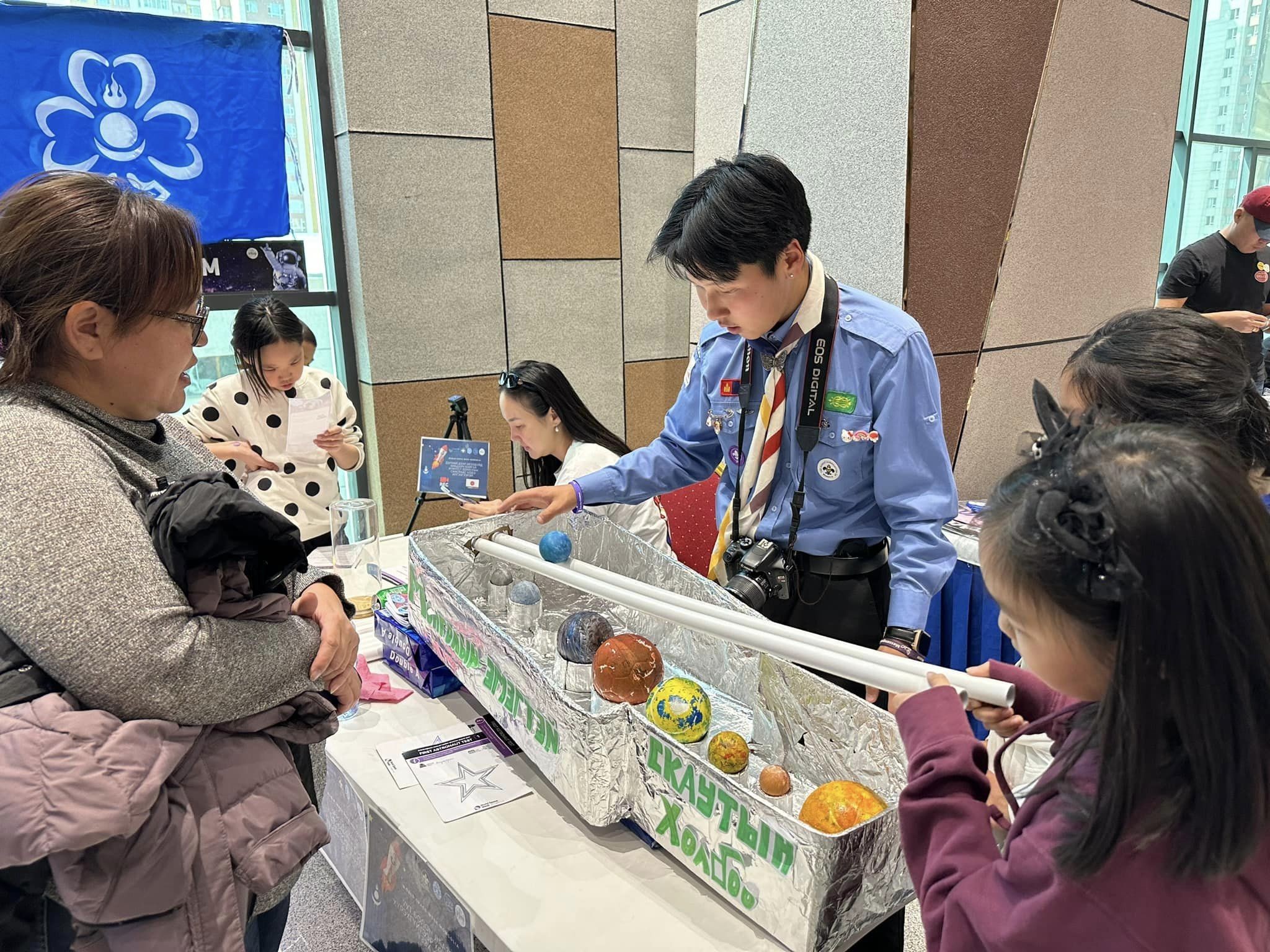 Д.Мөнхтулга: Сансрын долоо хоногийг 25 дахь жилдээ дэлхийн улс орнууд тэмдэглэн өнгөрүүлж байна. Энэ бол дэлхий даяар зохион байгуулагддаг шинжлэх ухааны хамгийн том арга хэмжээнд тооцогддог. Бидний хувьд хоёр жилийн өмнөөс албан ёсны эрхтэйгээр дэлхийн сансрын долоо хоногийг Монголдоо тэмдэглэн өнгөрүүлж эхэлсэн. Энэ жил 3 дахь удаагаа хийж байна. Бид анхны жил нэлээн хүлээлттэй, бэлтгэлтэй байсан. Өдөрт ойролцоогоор мянган хүүхэд ирэх болов уу, долоо хоногтоо 7 мянган хүүхэд ирэх болов уу гэж тооцоолсон. Гэтэл бидний 7 мянган хүүхдэд зориулаад бэлдчихсэн байсан зүйл маань хоёр дахь өдрөө дууссан. Тэгээд оролцогч байгууллагууд маань сандраад 2, 3 удаагийн хэвлэлтүүд хийж шөнөжингөө ажилласан. Пуужингийн хэрэглэгдэхүүн, чимэглэлүүдээ манай ажилтнууд дахиж бэлдээд түүхэндээ байгаагүй үзүүлэлт болсон. Тэгээд 7 хоногийн дараа бид нар Зайсан Хиллийн автомат тоглогч болон сайн дурынхны тоог нэгтгэхэд 7 хоногийн хугацаанд 40125 хүүхэд зорьж ирсэн байсан. Энэ бол ерөөсөө зохион байгуулж байгаа бид нарын ур чадвар огтоос биш. Харин сансар огторгуй шинжлэх ухаан гэдэг зүйлээр хүүхдүүд ингээд цангачихсан байгаагийн бодит жишээ нь анхны сансрын 7 хоногоор илэрсэн. Харин 2 дахь удаагаа буюу өнгөрсөн жил бид 47 мянган хүүхдэд хүрч ажилласан бол энэ жилийн хувьд Монгол орон даяар Монголын бүх аймгуудад дэлхийн сансрын 7 хоногийг дэлхийн 100 гаруй улс оронтой нэгэн зэрэг зохион байгуулж байна. Ийм учраас энэ жил Дэлхийн сансрын 7 хоногийн байгууллагын хамгийн онцлох сэдэв нь манай Монгол улс болж байгаа юм. Бид хүртээмжийг хамгийн өндөр түвшинд хийж байгаа учраас ийнхүү онцолж байна. Бидний хийсэн ажил олон улсдаа жишиг болж дэлхийн сансрын долоо хоногийн байгууллагын тайлангуудад тусгагдана.