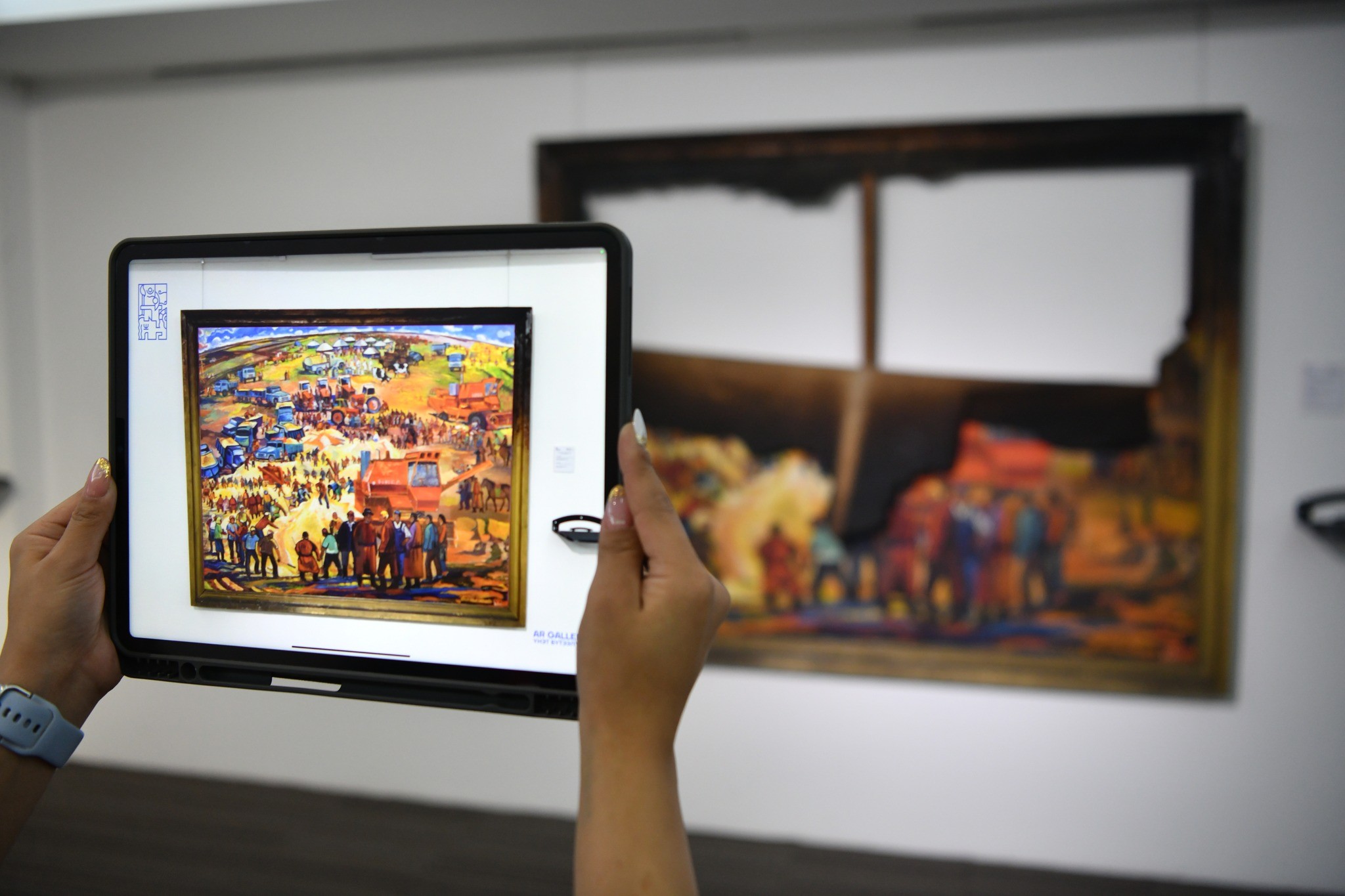 Монголын уран зургийн галерейн сан хөмрөгч, урлаг судлаач Б.Мөнгөнчимэг: Энэхүү үзэсгэлэн нь гурван хэсгээс бүрдэж байна. Эхний хэсэг нь хосгүй үнэт бүтээлүүдийг сонирхолтой байдлаар үзэгчдэд хүргэх хэсэг бол хоёрдох нь галын гэмтэлд өртсөн уран зургийг сэргээн үзүүлэх хэсэг. 2009 онд Монголын уран зургийн галерейд гал гарч харамсалтай хэрэг болсноос хойш бид уран зураг сэргээн засварлах, сэргээн бүтээх, лаборатори байгуулах зэрэг олон төслийг хэрэгжүүлсэн. Үүний нэг нь AR-Gallery үнэт бүтээлүүд төсөл юм. Төслийн хүрээнд 50-иас дээш хувийн шаталттай буюу дахин үзэгчдэд хүргэх боломжгүй болсон бүтээлийг AR технологийн тусламжтайгаар үзэгчдэд хүргэж байна. Гуравдугаар хэсэг нь хосгүй үнэт бүтээлийг тэмтрэхүй байдлаар буюу харааны бэрхшээлтэй иргэд хүрч, мэдэрч үзэх боломжтойгоор арьсаар урлаж хийсэн хэсэг юм. Энэ нь урлагийн бүтээлийг илүү олон хүнд хүртээмжтэй байлгах зорилготой. Монголын дүрслэх урлагт таван хосгүй үнэт бүтээл байдаг нь манай уран зургийн галерейн танхимд үзэгчдийн хүртээл болсоор байна. Харин галд өртсөн бүтээлүүд нь дүрслэх урлагийн үнэт бүтээлүүд. Үүнээс Ардын зураач, Төрийн соёрхолт, УГЗ Амгалангийн говийн хишиг, хотын залуус хөдөөд гэх мэт алдартай зургуудыг нэрлэж болно. Мөн Төрийн соёрхолт, зураач Тананцацралт, Мөнхжин нарын бүтээлүүд бий. Эдгээр зургууд нь тухайн цаг үеийнхээ монгол хүний сэтгэлгээг илэрхийлж байдгаараа онцлогтой.