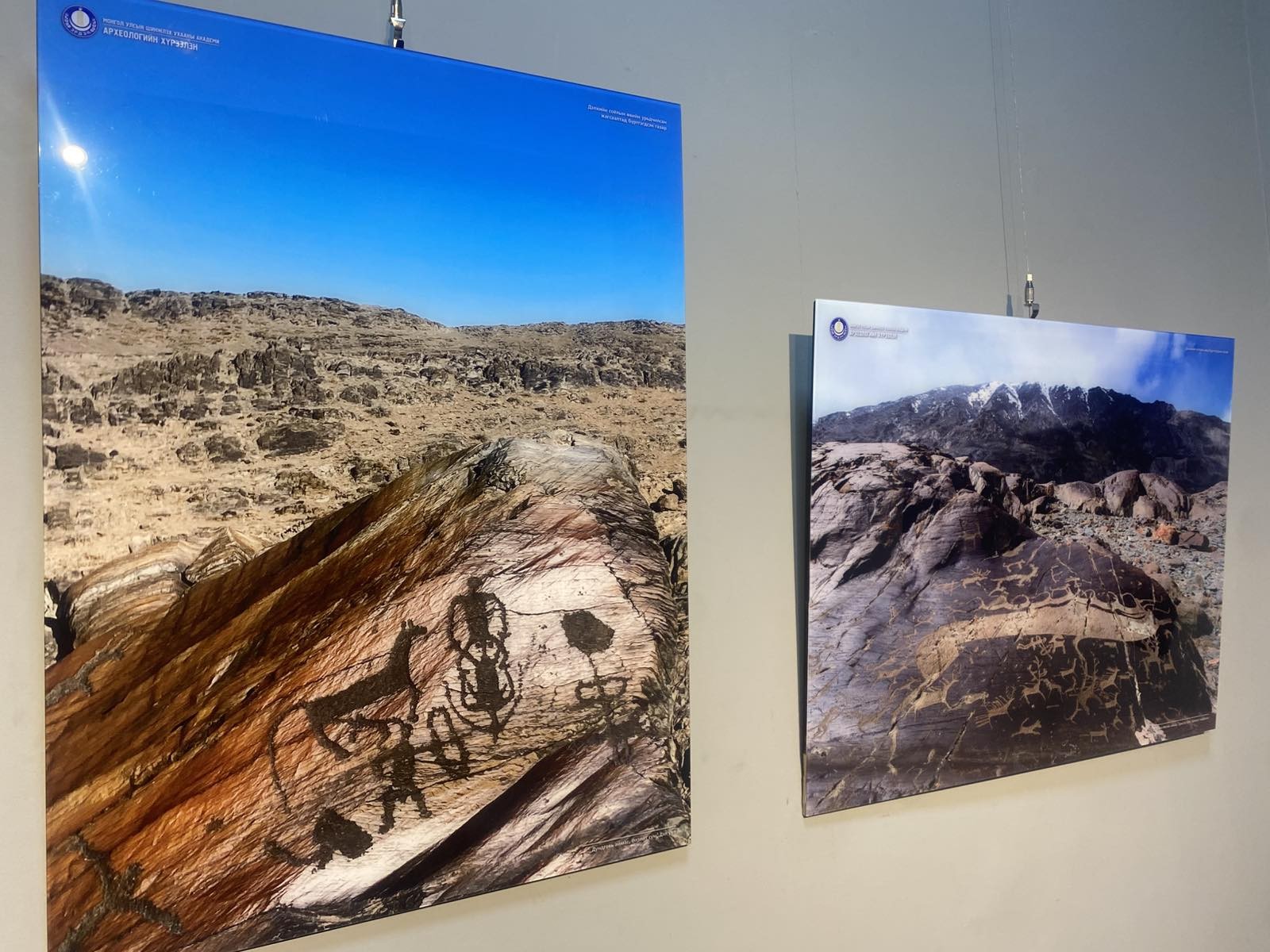 Соёл, спорт, аялал жуулчлал, залуучуудын яамны Соёлын өвийн хадгалалт хамгаалалт, сэргээн засварлалтын бодлогын хэрэгжилтийг зохицуулах асуудал хариуцсан ахлах мэргэжилтэн П.Алдармөнх: 2024 онд хийсэн эрдэм шинжилгээний хурлын үеэр дэлгэгдсэн хадны зургуудаас яамны үзэсгэлэнгийн танхимд 10 зураг байна. Хамгийн эхний зураг бол хүний гарын зураг байгаа юм. Тухайн үед амьдарч байсан хүн гараа хадан дээр тавиад гадуур нь зос түрхээд гарынхаа хээг үлдээсэн байна. Энэ бол он цагийн хувьд Монгол нутгаас олддог хамгийн эртний үеийн хадны зураг юм. Тухайн үед хүмүүс хадан дээр өөрийнхөө гар юм уу эсвэл тухайн үед байсан амьтныг дүрсэлдэг байсан. Энэ нь өөрсдийнхөө овог аймгаа тэмдэглэж үлдэж байна гэсэн агуулгатай. Дараагийн зураг бол Ховд аймгийн Эрдэнэбүрэн сумын Цамбагаравын Зостын хадны зураг байна. Энэ зураг дээр морь унасан, гартаа урт жад барьсан хүмүүсийг дүрсэлжээ. Энэ дүрслэл бол Жужаны үед холбогдоно. Түүхийн сурвалж дээр Жужаны эзэнт гүрний үед иймэрхүү зургууд гардаг учраас энэ хадны зургийг тэрхүү зурагдсан хэв шинжээр нь хараад Жужаны үед холбогдуулан авч үздэг. Дараагийн зураг бол Баянхонгор аймгийн Баянлиг сумын Бичигтийн амны хадны зураг байж байна. Энэ дурсгалт газар дэлхийн өвийн урьдчилсан жагсаалтад орчихсон дэлхийн өвд бүртгүүлэх судалгааны ажил нь хийгдээд явж байгаа ийм дурсгалт газар юм. Энэ зураг дээр Монголын хүрэл зэвсгийн үеийн нэг том төлөөлөл болох буган чулуун хөшөөн дээр байдаг дүрслэлийг хадны зураг дээр яг адилхан маягаар дүрсэлж өгсөн байдаг. Тэр дүрслэлийг маш тод харъя гэвэл хажуу талд нь байгаа Цэнгэл сумын Шивээт хайрхны хадны зургаас харж болно. Удаах зураг бол дэлхийн өвийн урьдчилсан жагсаалтад орчихсон байгаа Дундговь аймгийн Өлзийт сумын Дэл уулын хадны зураг байна. Зөвхөн энэ дурсгалт газар л гэхэд 5 мянга орчим хадны зураг байдаг. Зарим тохиолдолд нэг дурсгалт газарт хэдэн 10 мянган зураг байдаг бол зарим тохиолдолд 20-30 зураг байх нь ч бий. Тэгэхээр хадны зургийг тоо ширхгээр ярих юм бол маш их хэмжээний зураг Монгол орны нутаг дэвсгэр дээр хадгалагдаж байна.