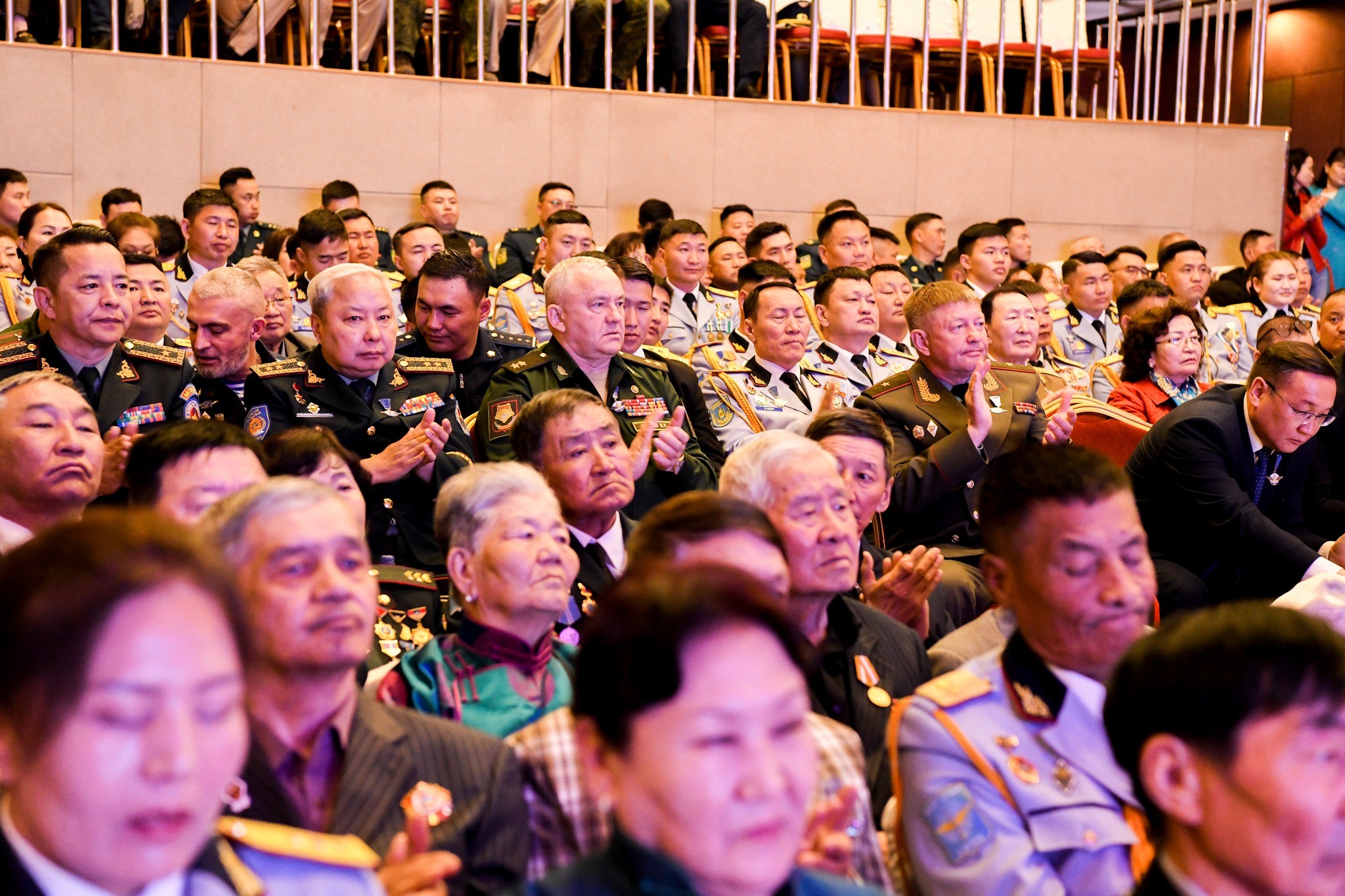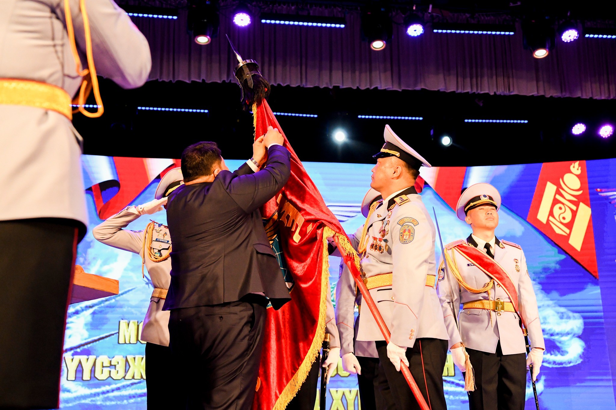 Түүхэн ойг тохиолдуулан Монгол Улсын Ерөнхийлөгч, Зэвсэгт хүчний Ерөнхий командлагчаас ирүүлсэн мэндчилгээг ҮАБЗ-ийн нарийн бичгийн дарга А.Бямбажаргал уншин сонордуулж, Агаарын цэргийн командлалыг “Цэргийн гавьяаны одон”-оор шагнасан тухай зарлиг танилцуулж Агаарын цэргийн командлалын байлдааны туганд хүндэтгэлтэйгээр зүүж өглөө.