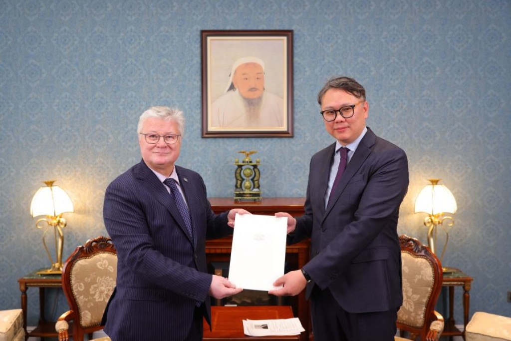 Онц бөгөөд Бүрэн эрхт Элчин сайд Карлис Ейхенбаумсийн Итгэмжлэх жуух бичгийн хуулбарыг хүлээн авав