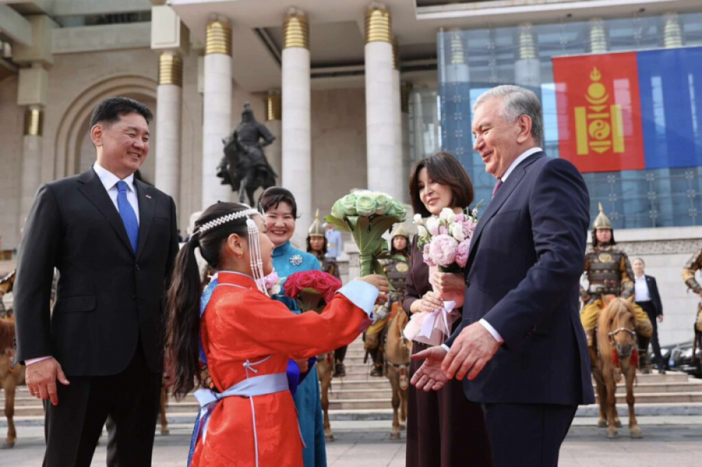 Президент Монголии У.Хурэлсух со своей супругой Л.Болорцэцэг официально приветствовали Президента Республики Узбекистан Шавката Мирзиёева и его супругу Зиорат ...
