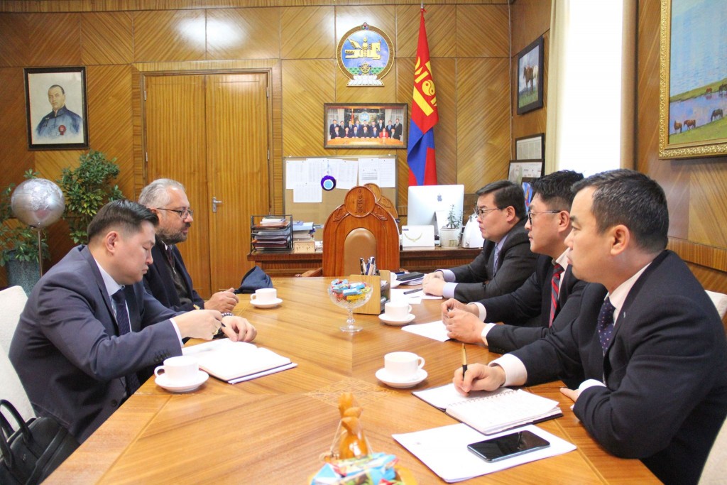На встрече министр Д. Цогтбаатар отметил важность развития двустороннего сотрудничества в области сельского хозяйства и кибербезопасности...