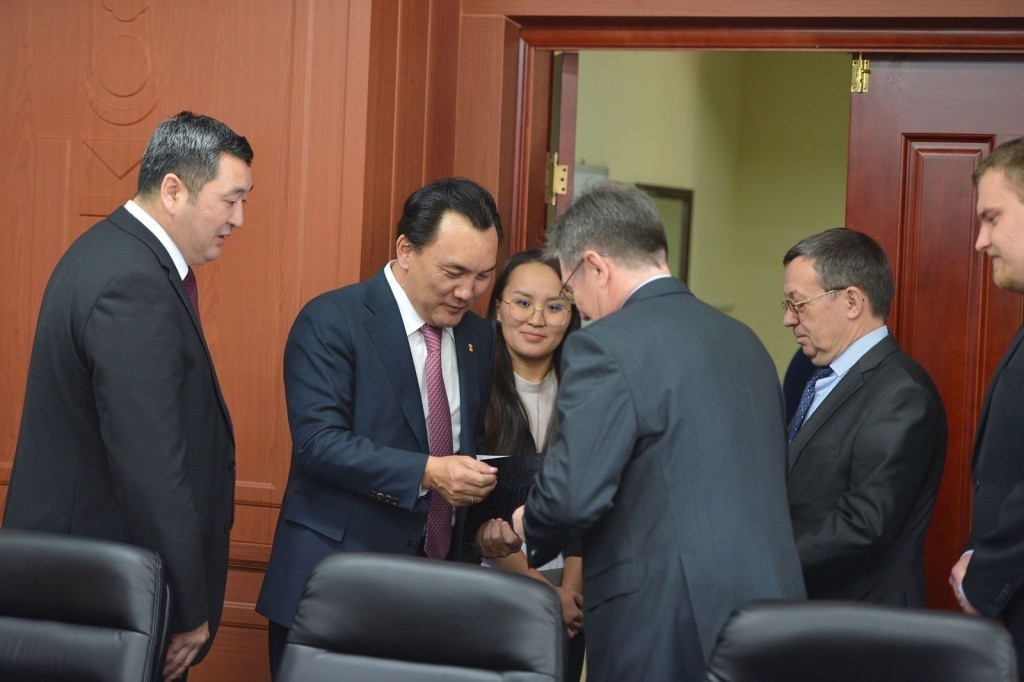 Во время встречи министра продовольствия, сельского хозяйства и легкой промышленности Б.Батзориг с Чрезвычайным и Полномочным Послом РФ И.Азизовым министр особ...