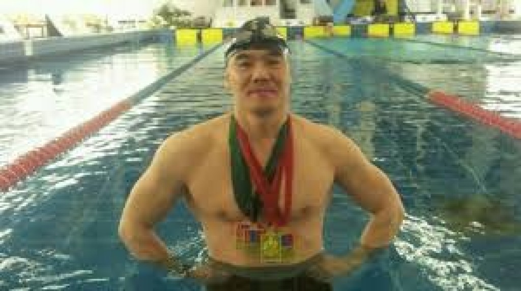 Наш спортсмен был занял второе место в заплыве на дистанции 25 м. баттерфляем.