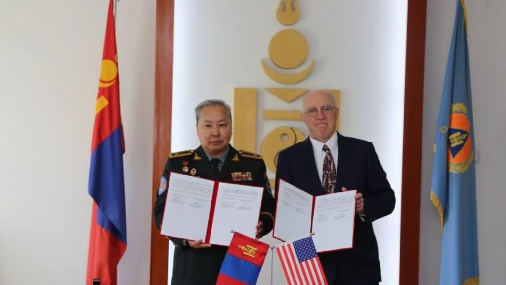 Меморандум подписали начальник Главного управления по чрезвычайным ситуациям бригадный генерал Г.Ариунбуян и Чрезвычайный и Полномочный посол США в Монголии Ма...