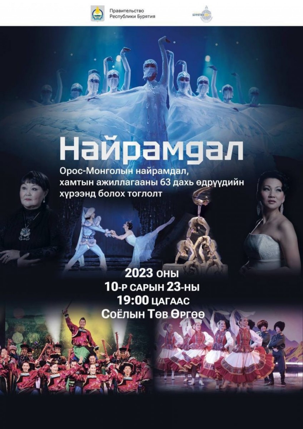 В рамках 63-х Дней Монголо-Российской дружбы и сотрудничества в Улаанбаатаре пройдет концерт ведущих бурятских артистов "Найрамдал". ...